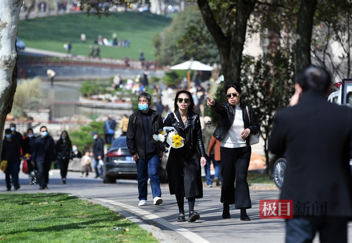 3月26日,清明节前夕,武汉迎来难得的晴好天气,久违的阳光点燃了市民出游的热情。在石门峰纪念公园,道路两边青松翠柏,绿树成荫,不少市民趁着周末好天气前来祭扫故人,顺便赏景踏青,游览春光。