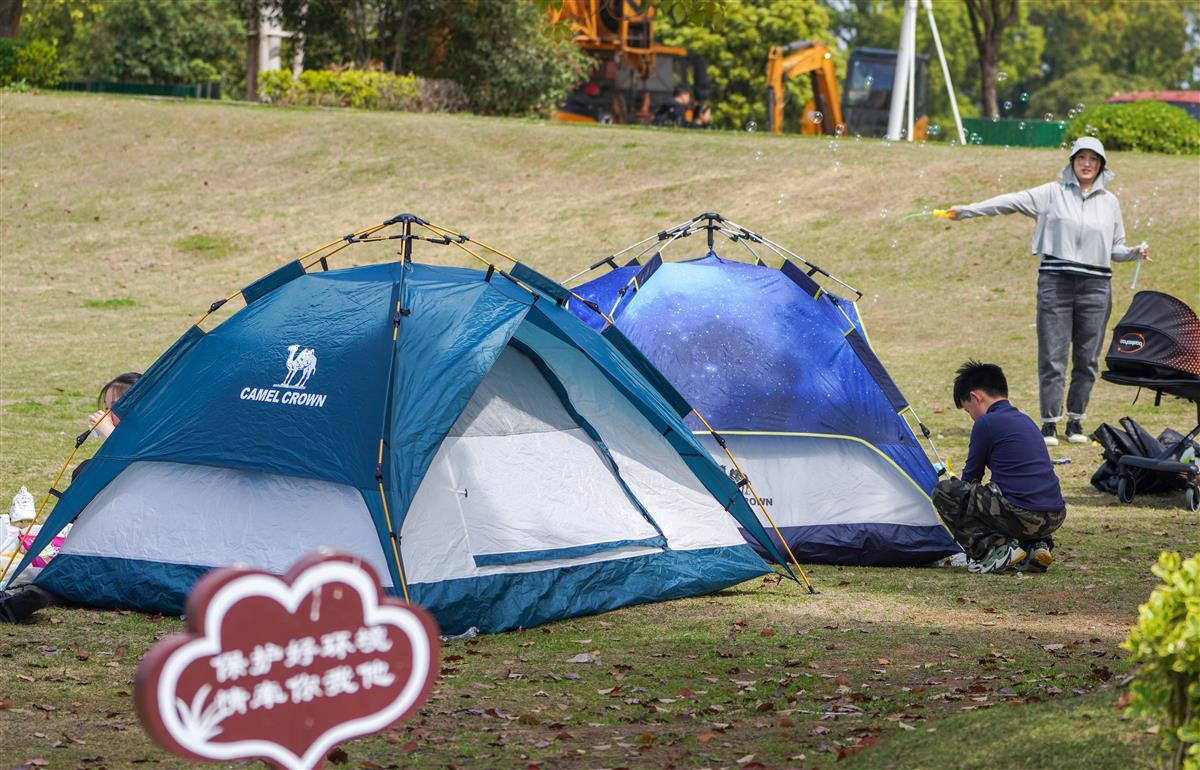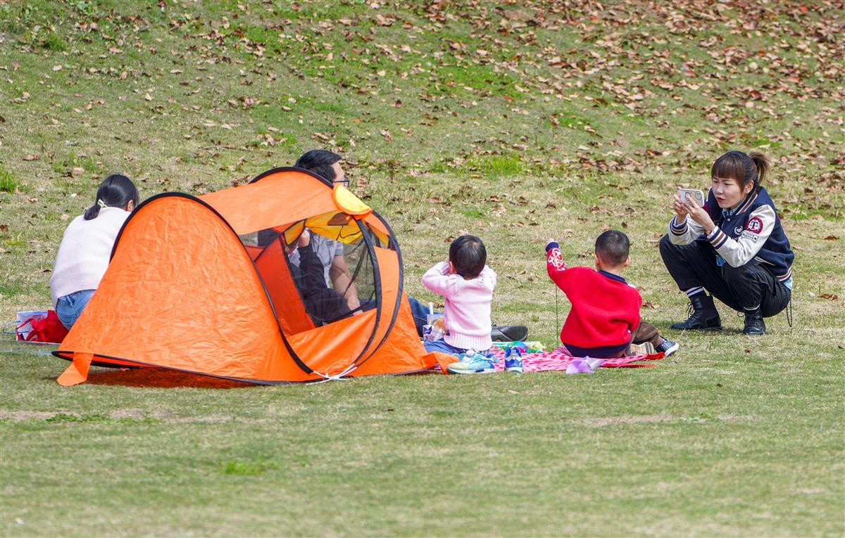 3月26日,经历一周阴雨天气后,江城武汉迎来一个大晴天,许多市民纷纷到户外露营踏青。
