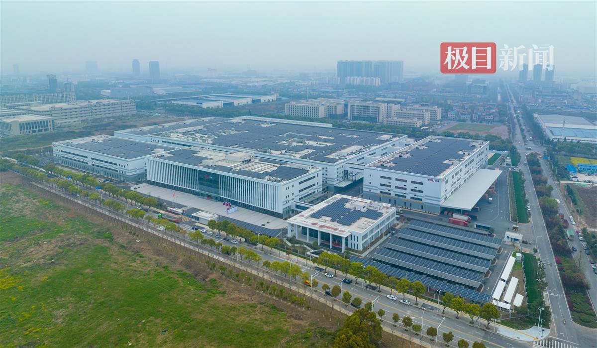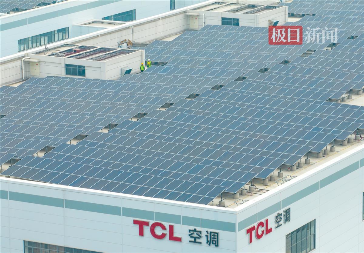3月29日,武汉市东西湖区,俯瞰刚启动的TCL空调武汉智能制造基地,厂区楼顶全部被光伏发电板覆盖。该基地光伏铺设面积达9.48万平方米,年均发电量900万度,相当于节约标准煤2970吨。