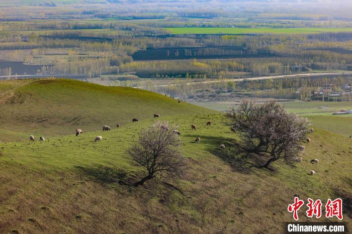 在杏花的点缀下,草原仿佛涂上了一层薄薄的胭脂。 李金维摄
