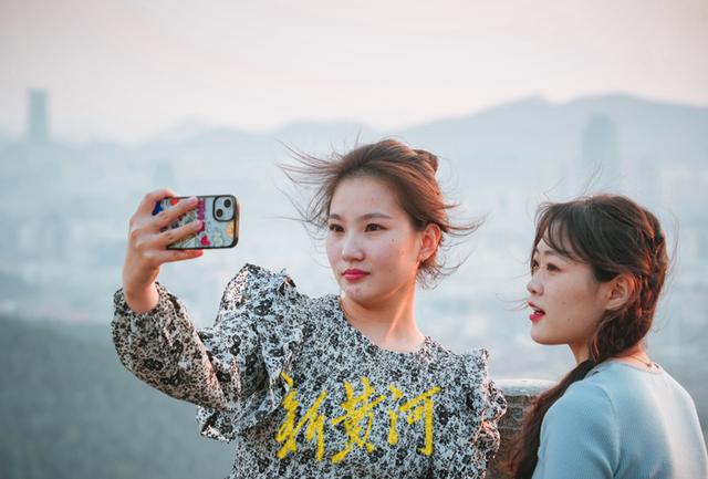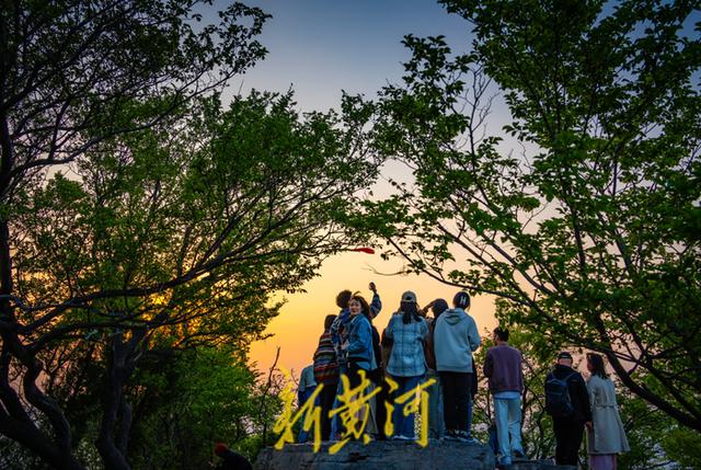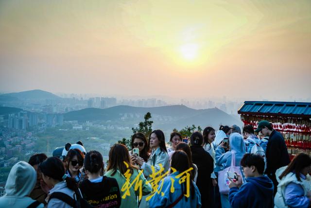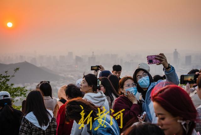 4月8日,日落时分,济南千佛山风景区山顶已是一席难求,众多游人选择在周末体验爬山的乐趣,纷纷用镜头拍摄下泉城的落日美景,亲身感受“山色入城,山望城,城望山”的壮丽画面。