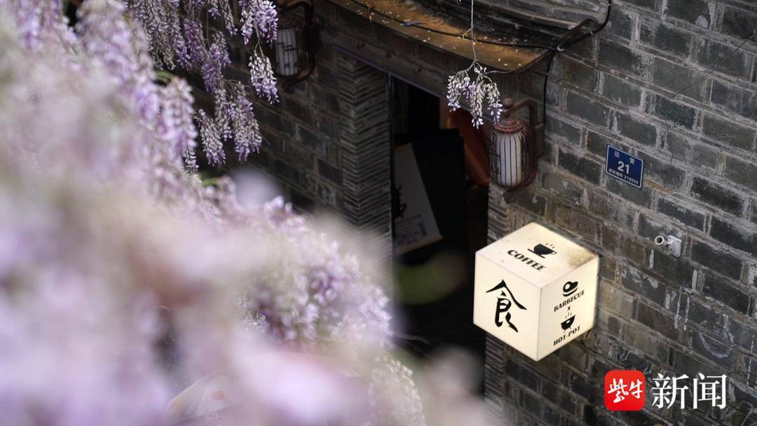 走在古朴的青石板路上,一抬头就能看见蜿蜒的枝蔓上,一串串紫藤垂挂枝头。漫步老门东,庭院、街角、檐下,阵阵清香扑面而来,最美人间四月天。