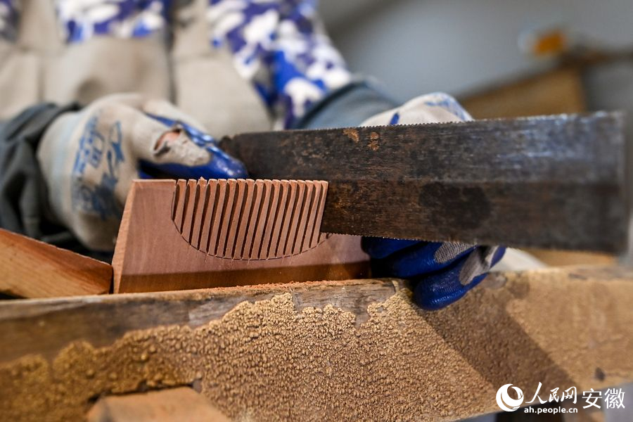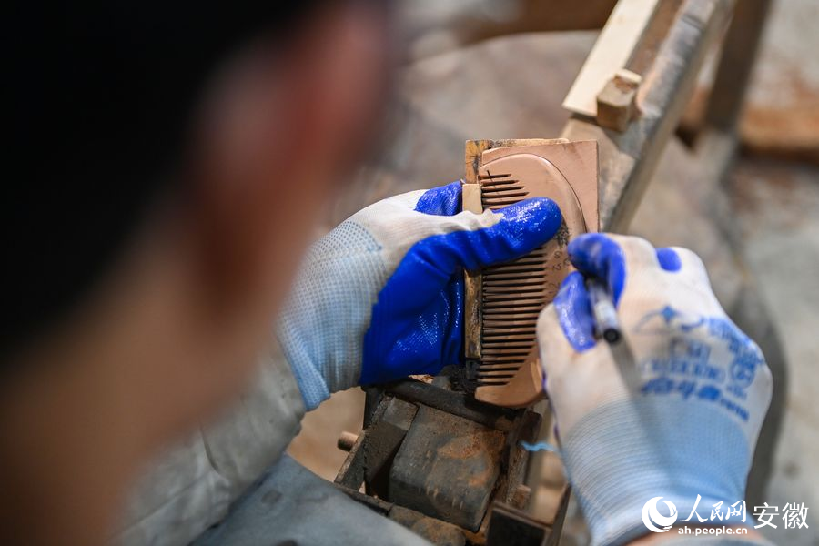 人民网合肥4月11日电(记者苗子健)在安徽泾县榔桥镇,这个只有三万人的小镇,却凭借悠久的木梳历史和精湛的制作技艺,而驰名中外。当地溪头村是我国目前最大的木梳生产加工基地,全球木梳市场占有率近70%。