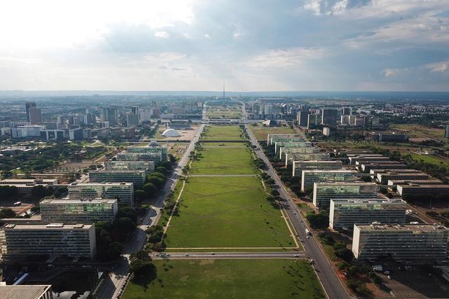 ↑这是2019年11月10日拍摄的巴西利亚中轴线,巴西政府机构的大楼分列在中轴线两旁。