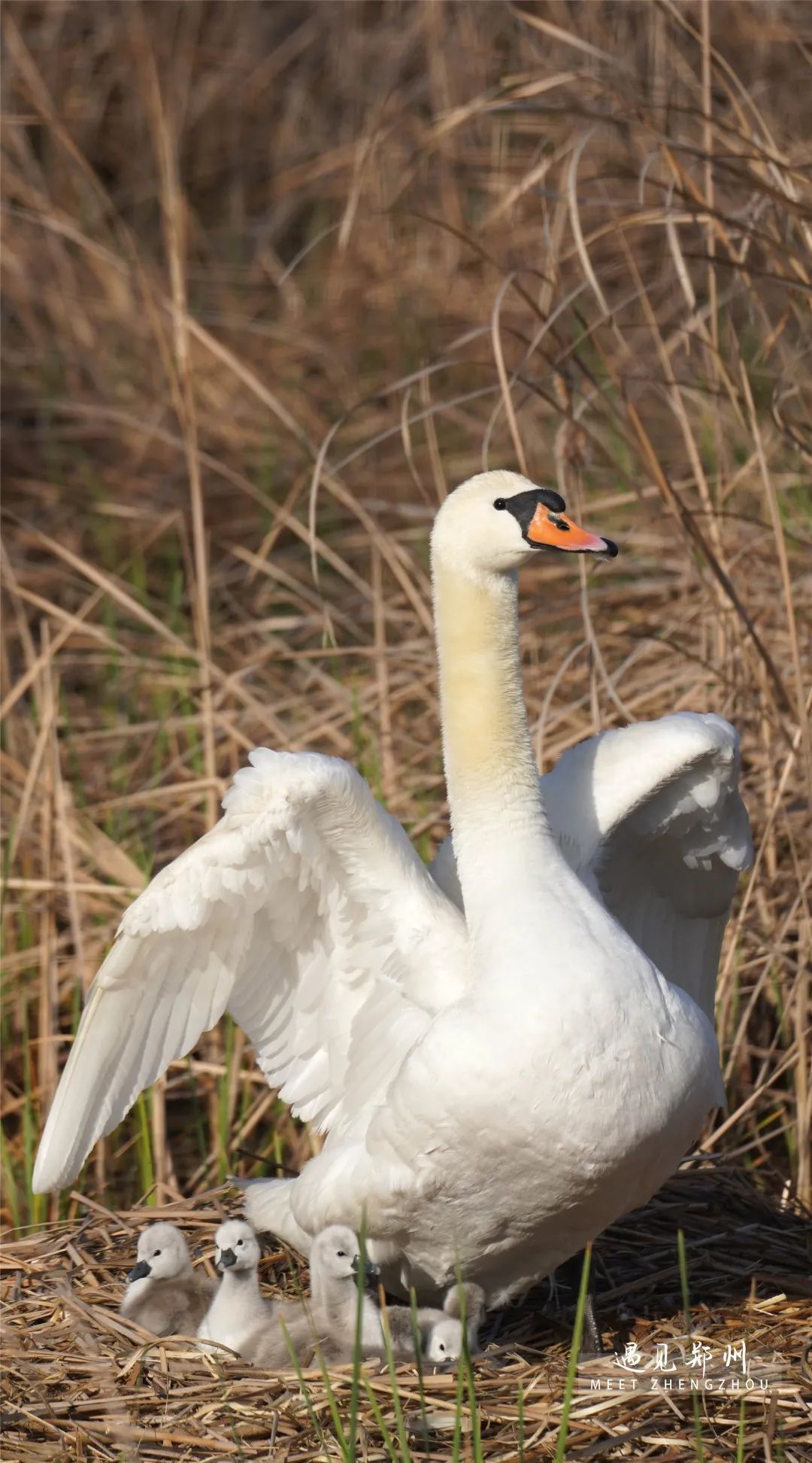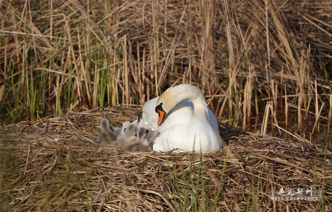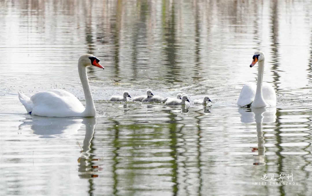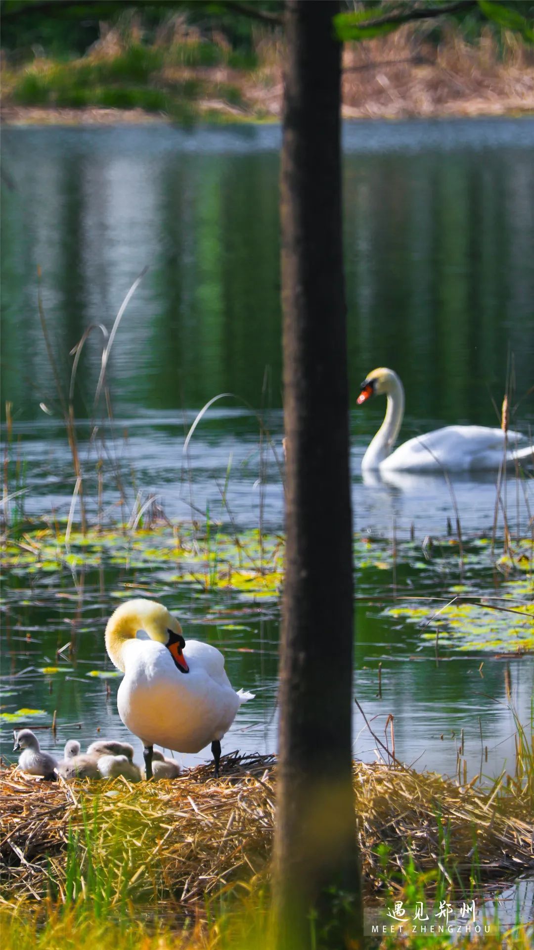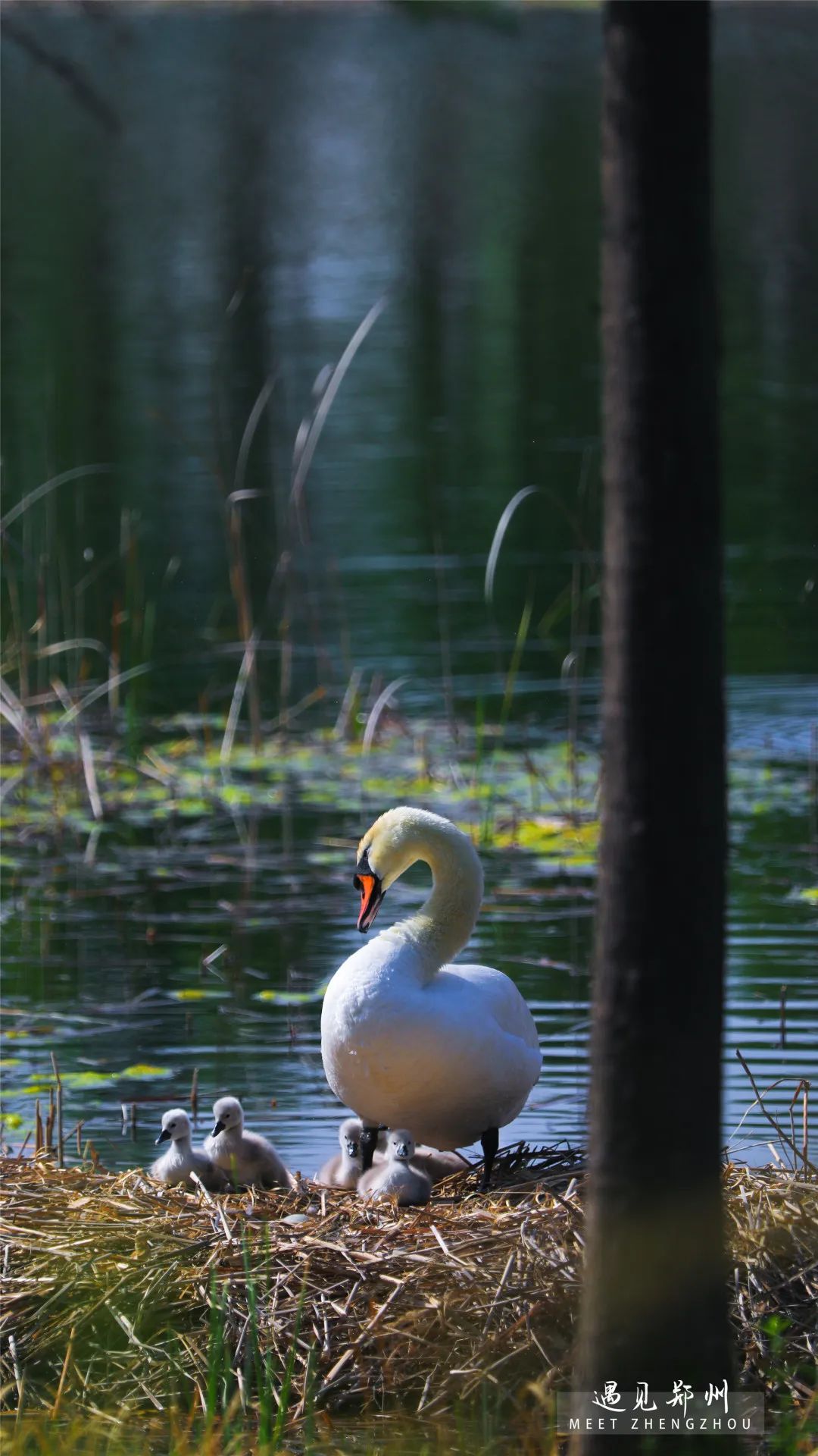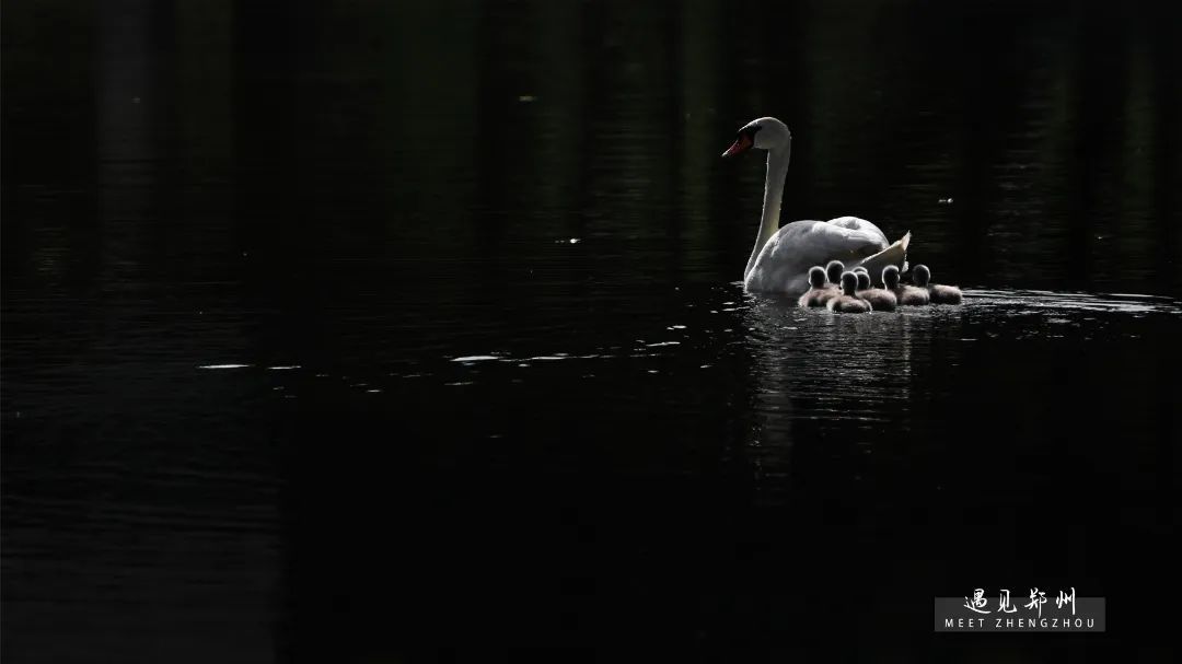 4月9日,郑州北龙湖的天鹅再次孵出小天鹅。目前,这些可爱的小家伙,在爸爸妈妈的呵护下,已经可以下水游玩。