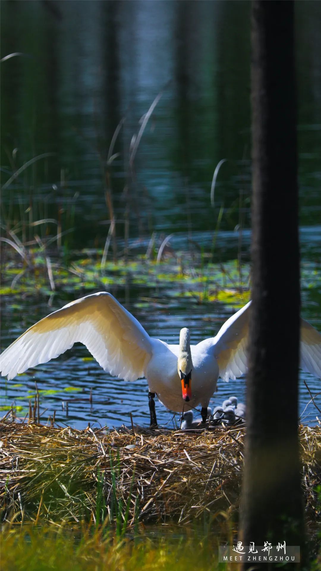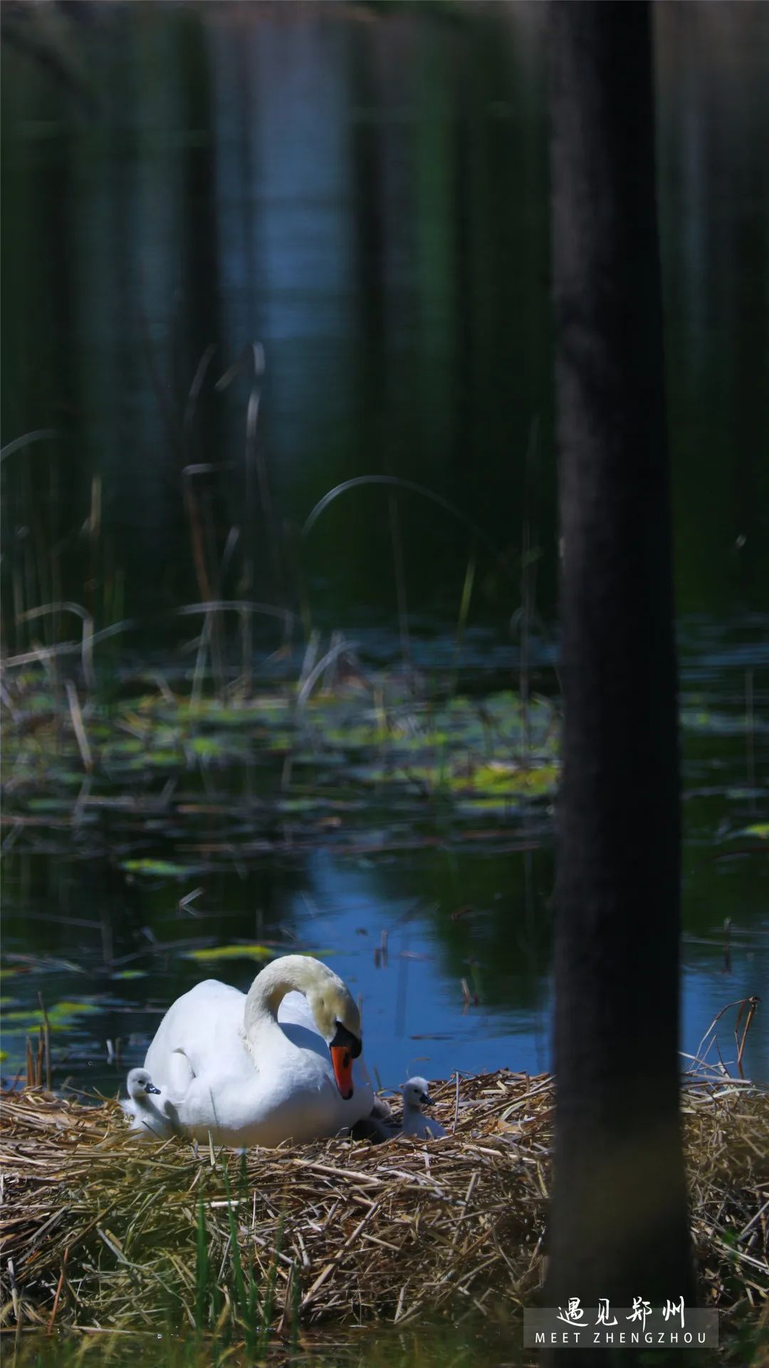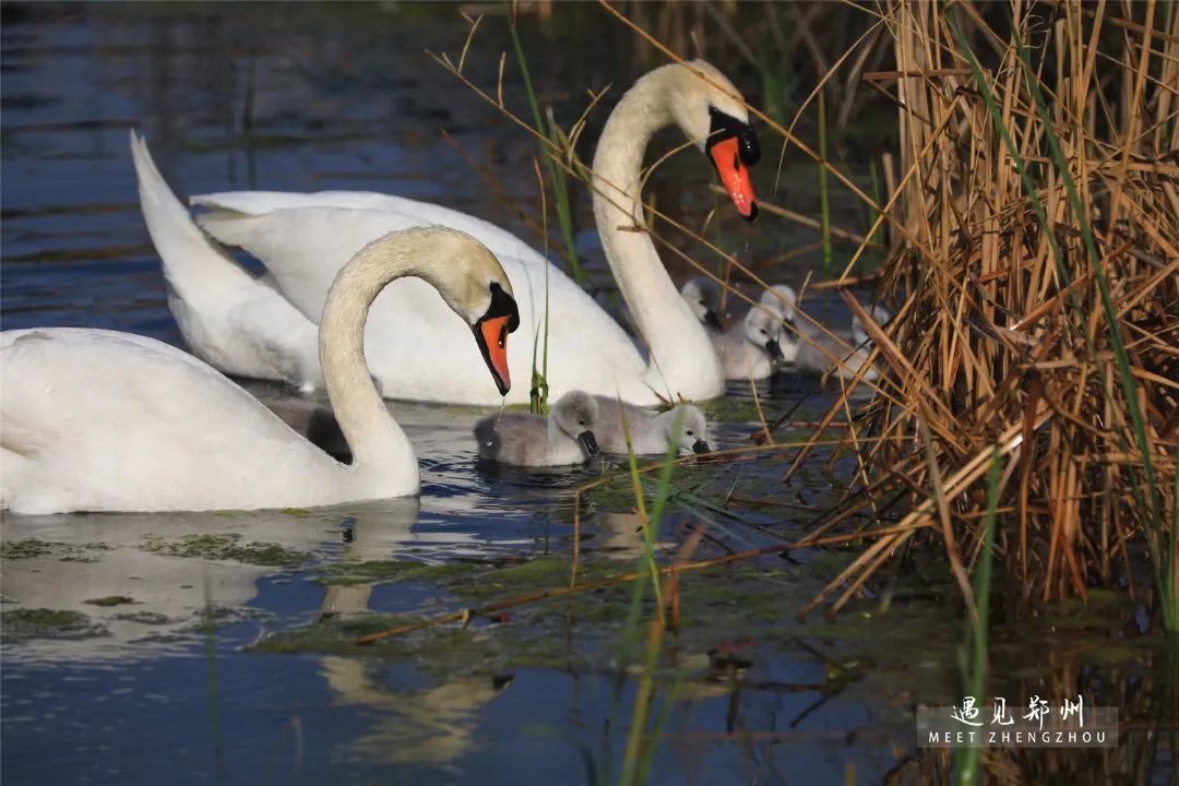 每年春天,北龙湖湿地公园内恩爱的天鹅都会给郑州人带来惊喜。