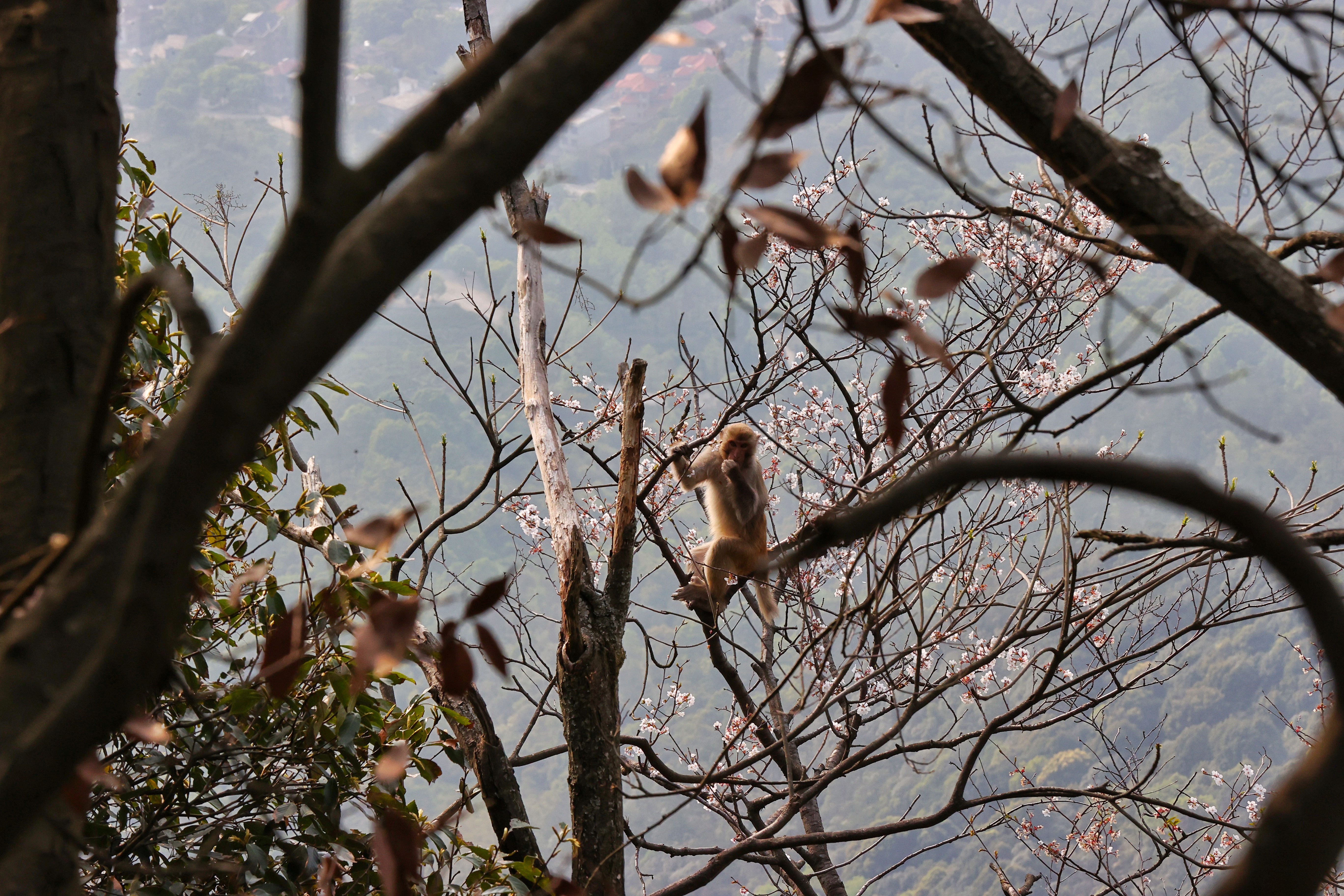 4月11日,猴群在庐山山林间嬉戏。中国日报记者姜东摄【责任编辑:妮思娜】