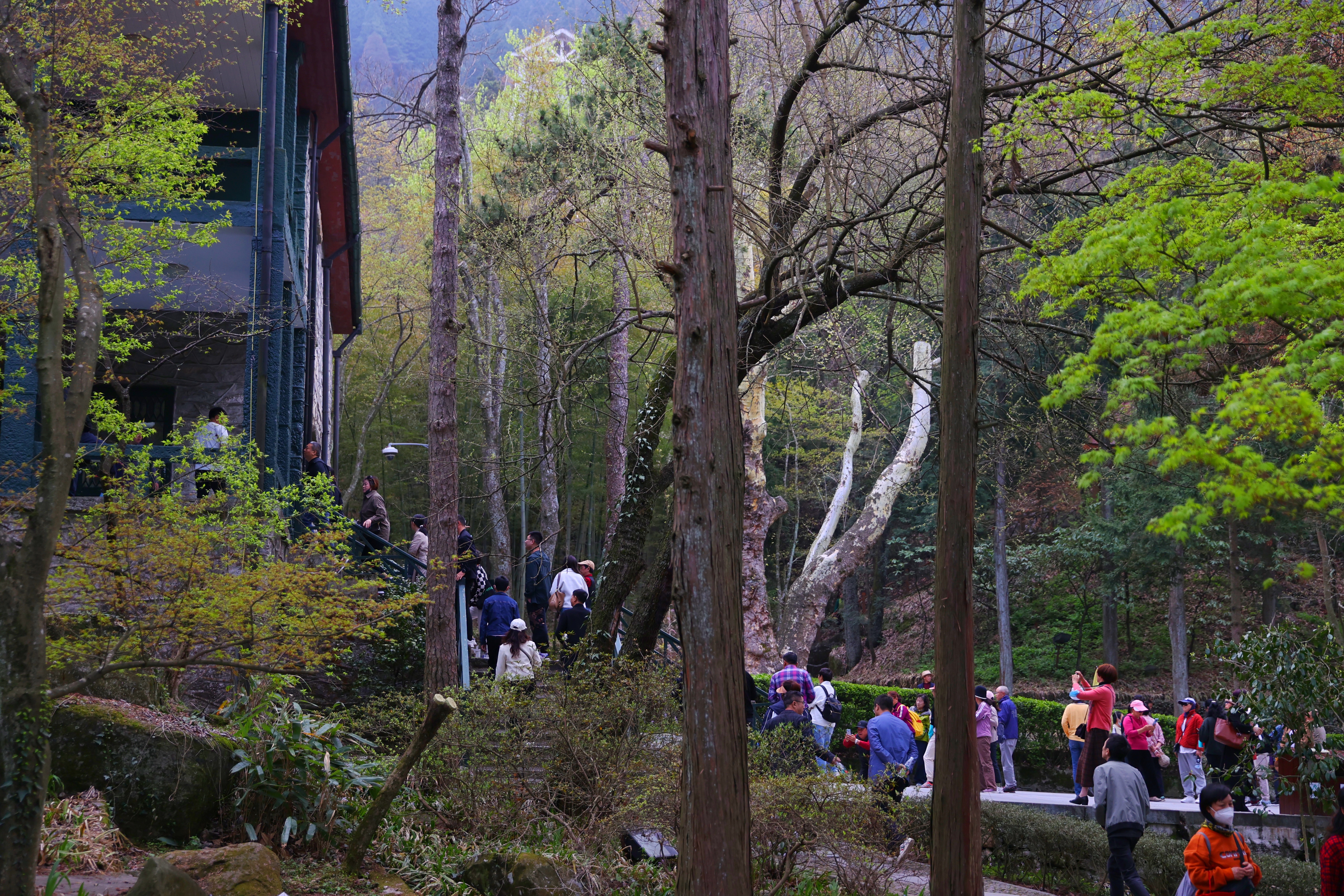 中国日报4月13日电(记者姜东)2023年4月12日,江西省九江市,游客在庐山风景区游玩。“人间四月芳菲尽,山寺桃花始盛开”,由于庐山海拔高导致的山地气候,让庐山春季比山下平原地区要晚一个月左右。随着气温渐升,庐山万物复苏,花朵竞相开放,迎来各地游人。
