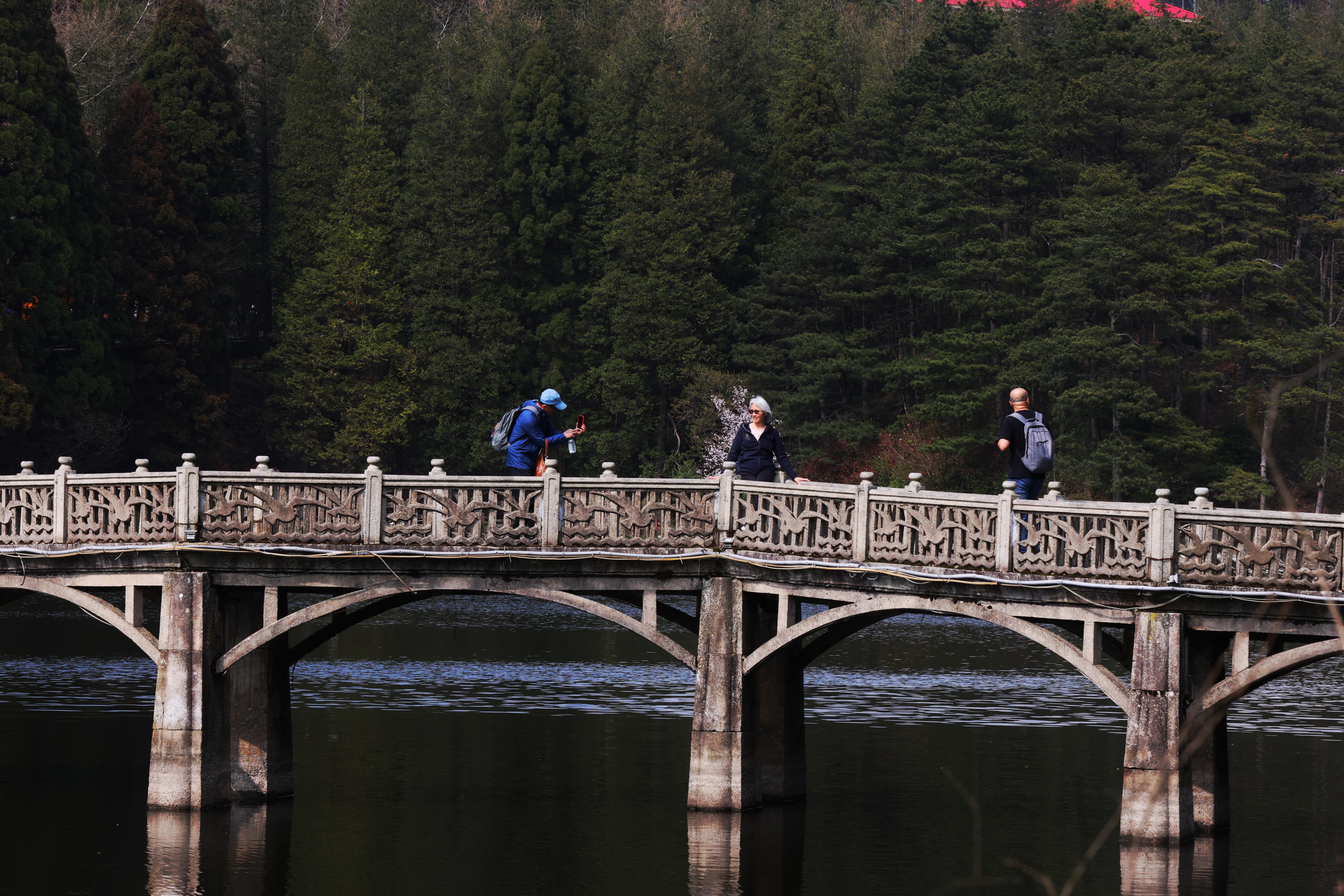 4月11日,游客在庐山如琴湖畔游玩。中国日报记者姜东摄