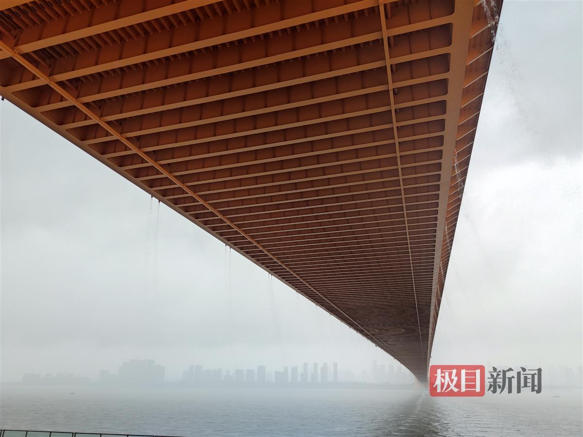 据悉,杨泗港大桥在桥面两侧每隔9米设置一组泄水孔,以满足强降雨时快速排水的要求。