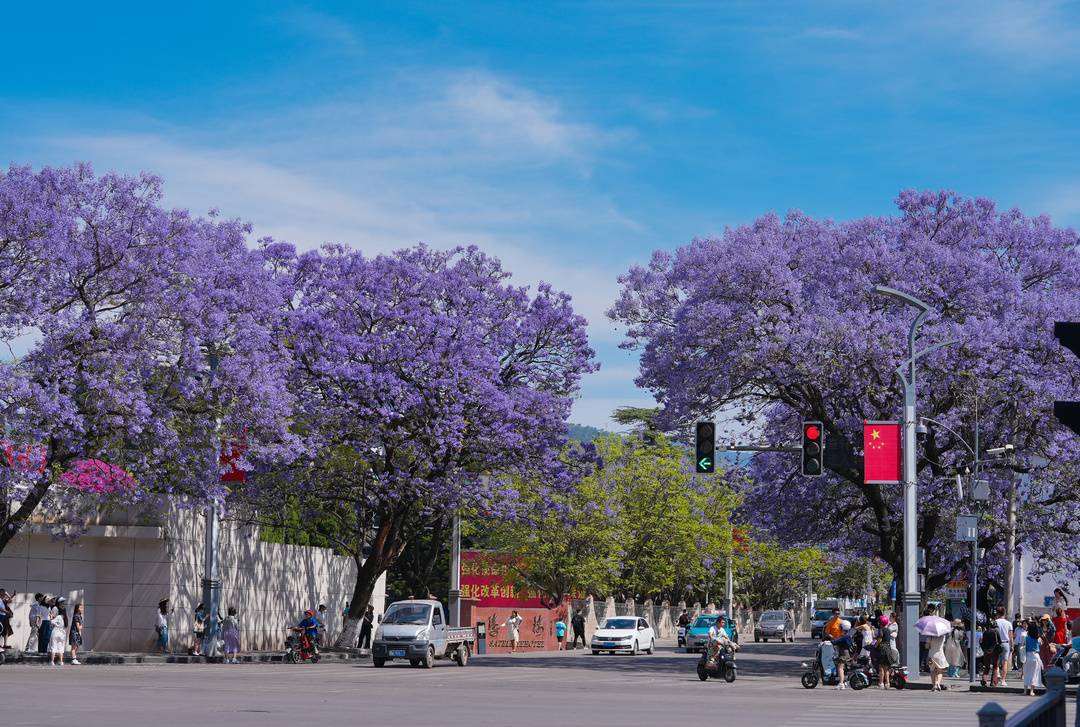 每年4月的中下旬,是四川凉山州西昌市蓝花楹的盛开时节。这是西昌的专属浪漫:在城区航天北路、健康路、建昌路等地,正在怒放的蓝花楹,将整座城市开成了紫色花海。