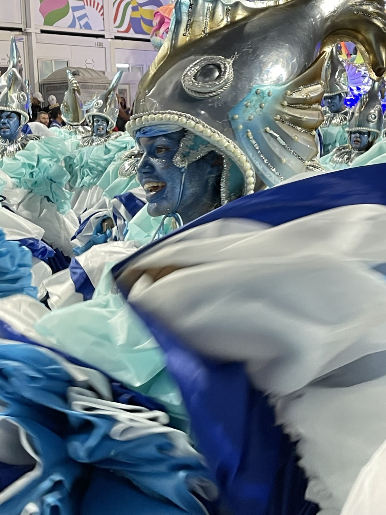 2023年里约狂欢节上盛装跳桑巴舞的姑娘(记者汤晔摄)