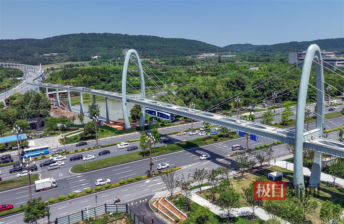 4月26日,武汉东湖高新区,光谷空轨旅游线项目首列“光谷光子号”空轨列车试车,预计今年内开通运营。据了解,线路规划总长26.7公里,先行建设的一期工程长约10.5公里,设车站6座。全车拥有270°观景功能,最多能容纳200余人。空轨列车可有效利用城市空间资源,既能服务日常通勤,也具有观光功能。该项目是国内首条规划建设的商用城市“空轨”,建成后将成为国内第一条投入商业运营的悬挂式空轨线路。