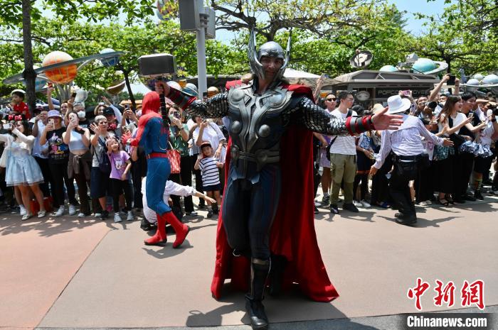 香港迪士尼推出“漫威超级英雄汇”活动吸引宾客入场。 李志华摄