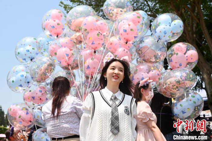 儿童与迪士尼经典角色米奇与米妮合影。 李志华摄