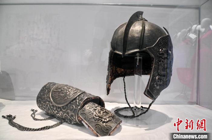 周杰伦于电影《满城尽带黄金甲》中佩戴的头盔及臂甲。 李志华摄