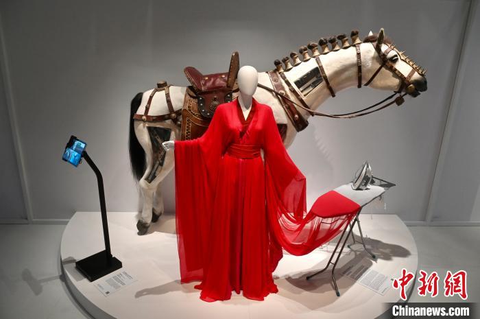 张曼玉于电影《英雄》中穿着的红色古装服、电影《狄仁杰之神都龙王》中的特别道具“水中马”。 李志华摄