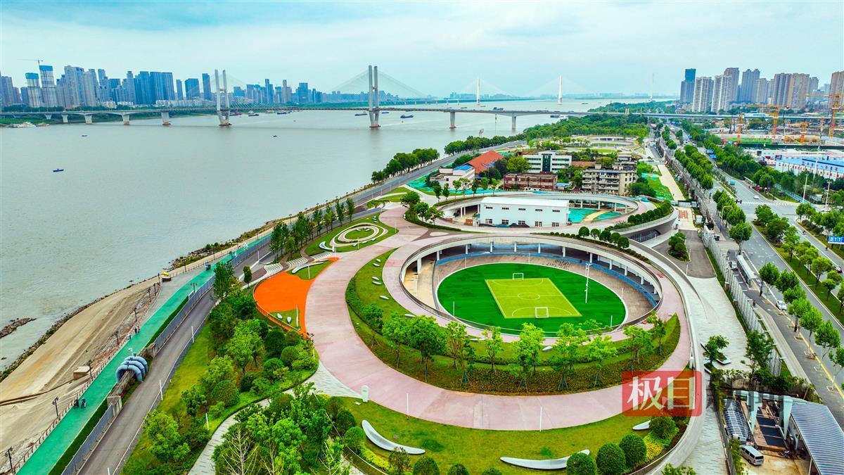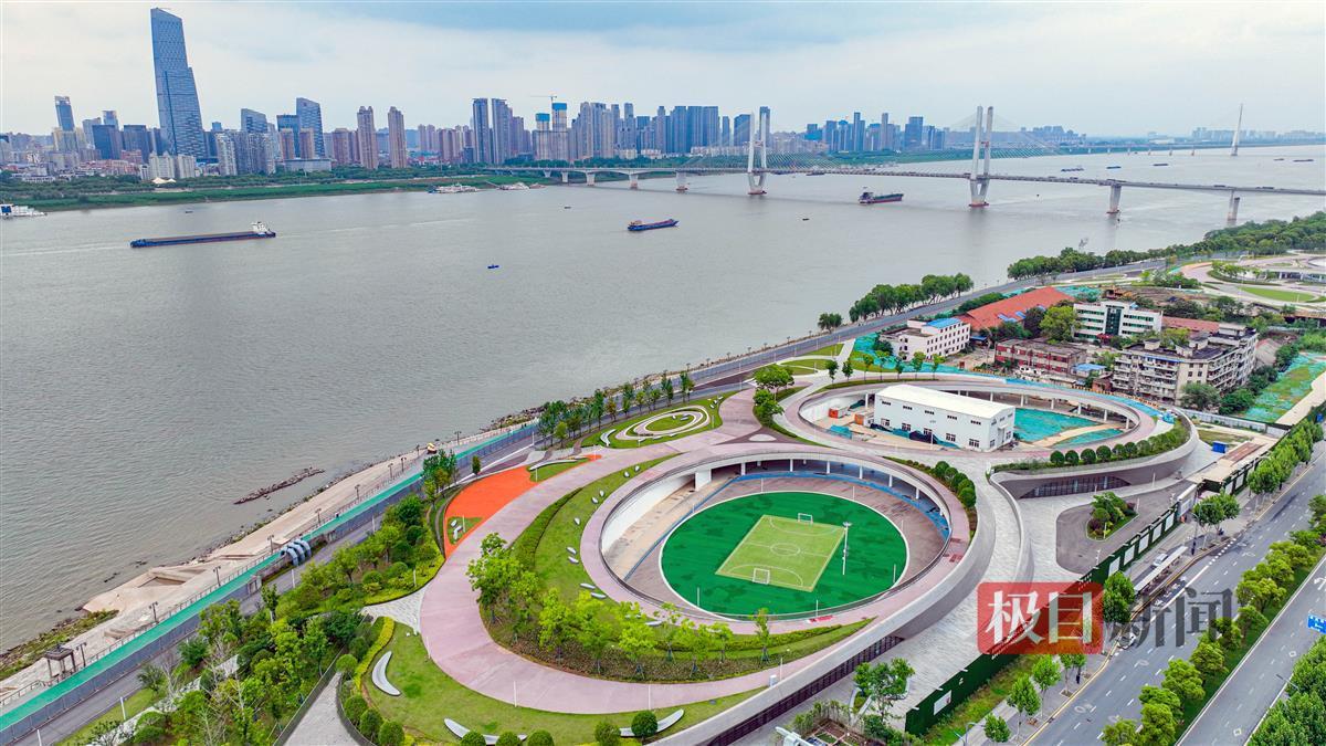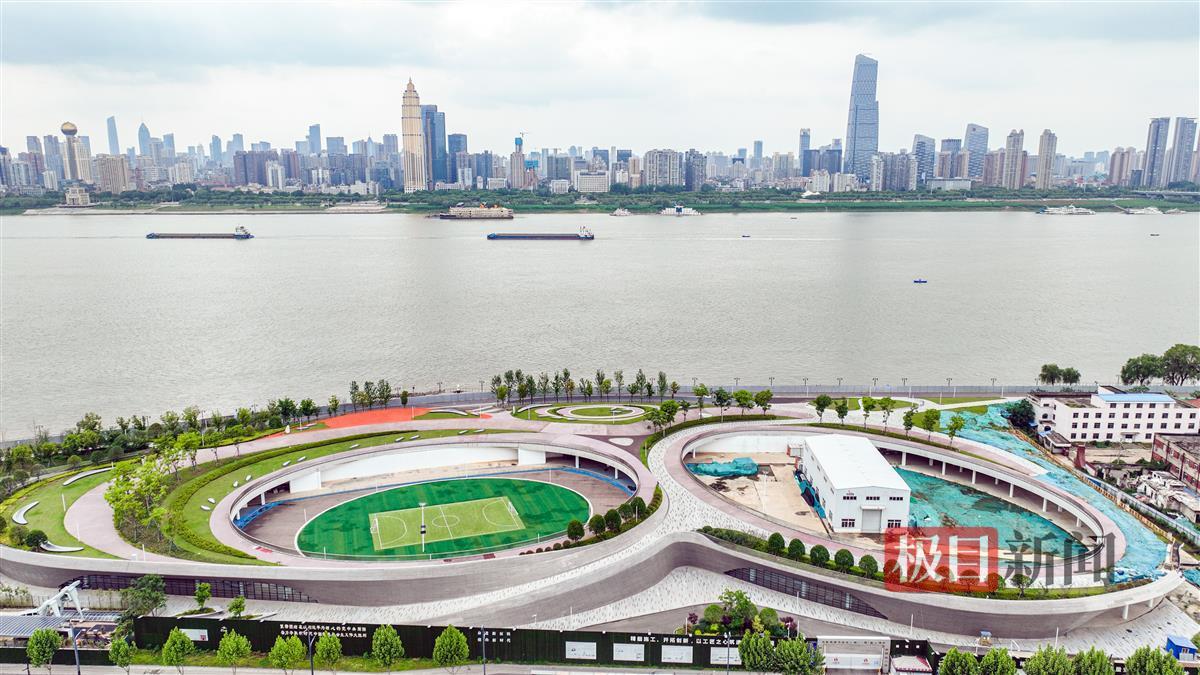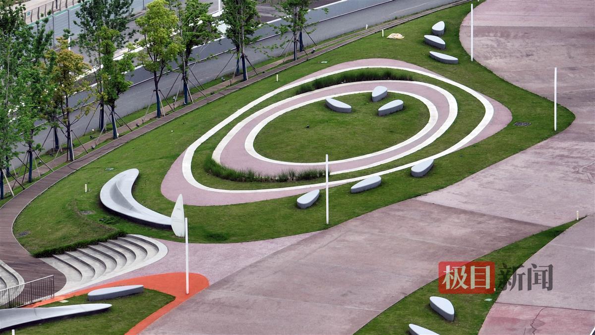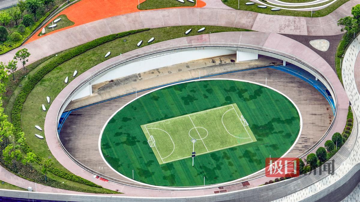 正在建设中的月亮湾城市阳台一期,去年完成基础建设后,5月5日,它的景观绿化也已经基本成型。据悉,主要种植了桂花、樱花等品种树木。已经建成的下沉广场中央是一个足球场,绿草茵茵,给人一种充满活力的感觉。
