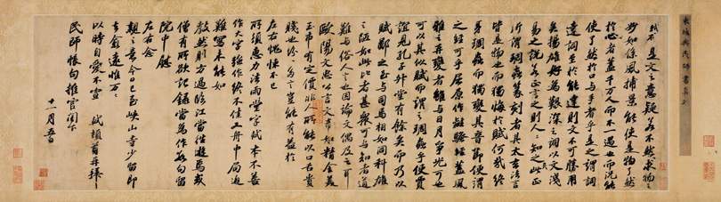 苏轼《行书答谢民师论文帖卷》纸本,纵27厘米横96.5厘米,上海博物馆藏.