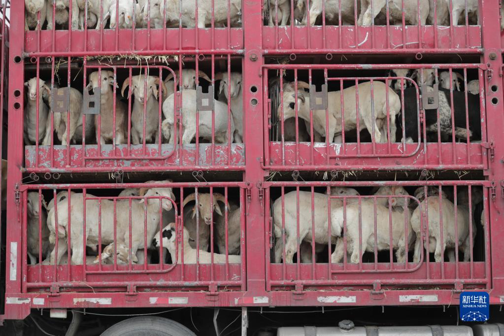这是5月7日在古浪森茂牛羊交易市场拍摄的准备运走的肉羊。新华社记者 马希平 摄