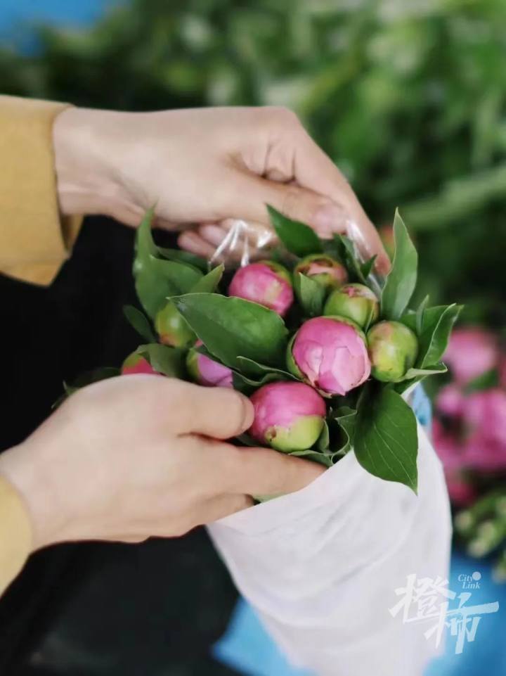 “今年的基地价就要12元/枝,仍然有许多批发商到处想办法拿货,小拇指大小的花苞都要。不少人在冷库里存着一批,就等‘520’时卖一波。”返回杭州前,荞麦包用不符合售卖标准、只能留在田里独自绽放的芍药,做了两个混色抱抱花桶,坐着高铁一路心情顺畅地回杭。手拎的这一路吸足了眼球,被n次问道:这是真花吗?