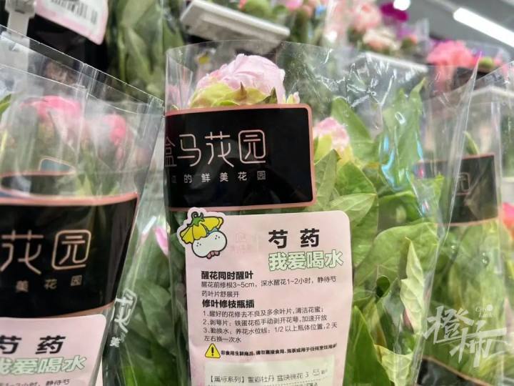 芍药这样的时令大品上市前,除了赵海泽,盒马的品控人员也会一起深入基地,打开手机直播连接起全国300多家门店的鲜花档口主管,通过手机直播培训,和线下口口相传、线下宣传物料、线上文描和短视频等方式,宣传养花知识,让消费者能把花养得更好。