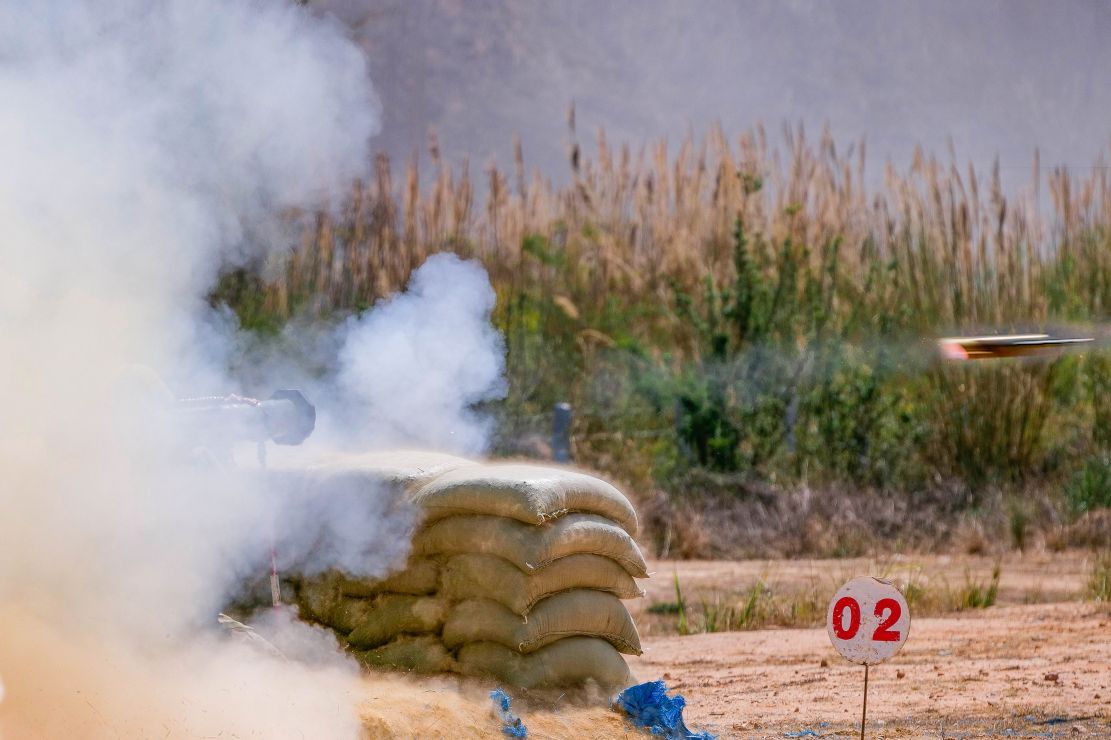 训练场上,安全员围绕武器的安全操作、常见故障排除、现场纪律要求等方面进行强调,严格训练场秩序,待机区、发弹区、射击区等重要点位有序展开。