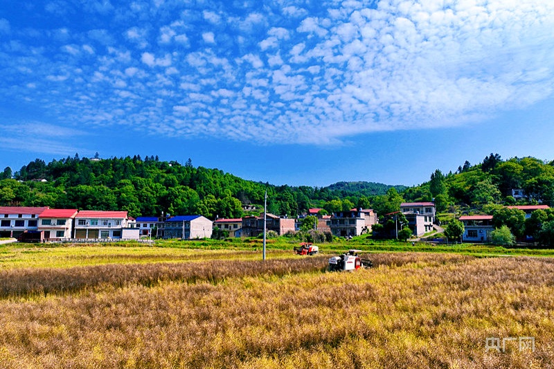 赤山镇湾里村油菜收割现场(央广网发梁欣摄)
