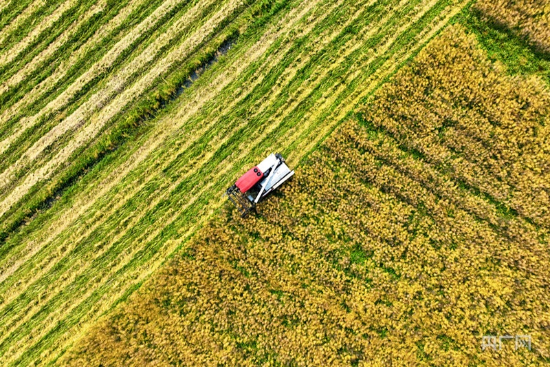 桐木镇杨坊村油菜收割现场(央广网发梁欣摄)
