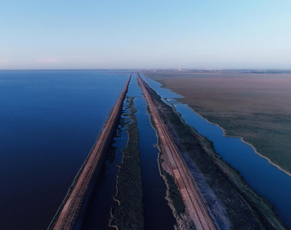 卧龙湖湿地紧挨内蒙古科尔沁沙地,干旱气候比较常见。为了能够同时保证水量又能保证水生植物的生长以及鸟类栖息地的存在,7.88公里长的L型堤坝以及三处闸门应运而生,L型堤坝将卧龙湖分成了南北两个湖区,南北两区分别修建了放水闸门,同时在L型堤坝也修建了连接两湖区的闸门,有效地实现了高、低两种水位的调节。