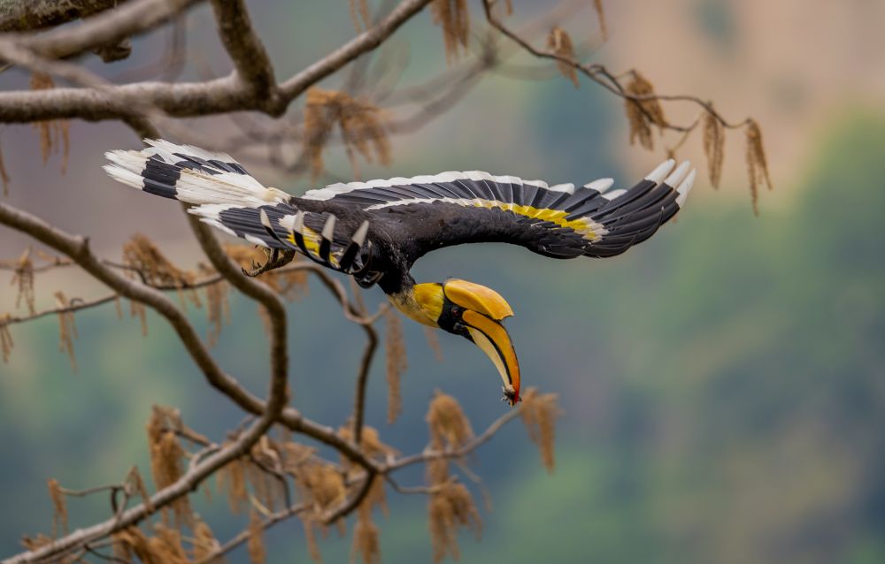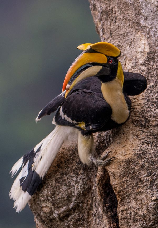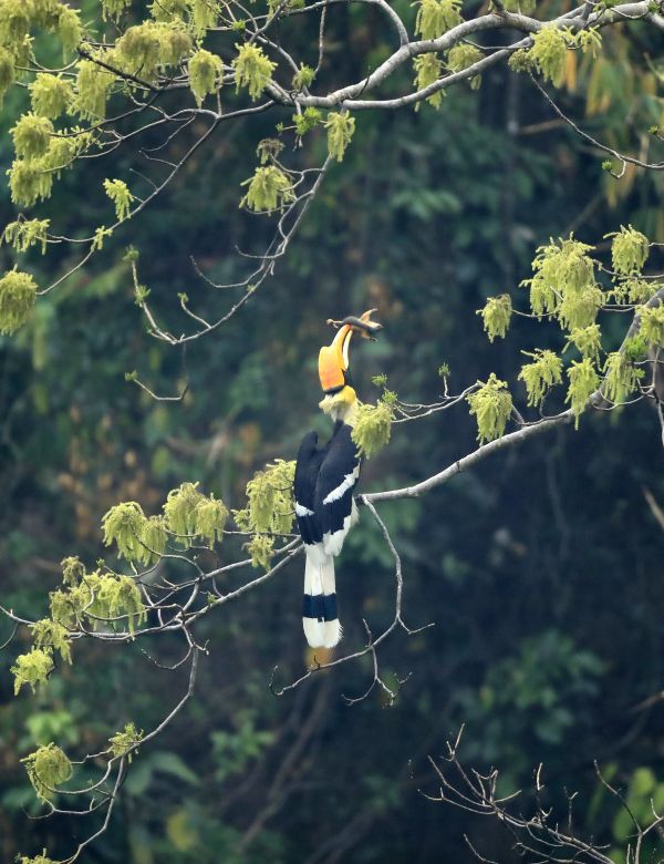 双角犀鸟准备给幼鸟喂食其他鸟类的鸟蛋。朱边勇摄