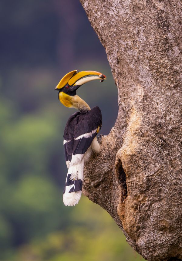 双角犀鸟有时也会捕捉小型昆虫,给幼鸟当“零食”。朱边勇摄