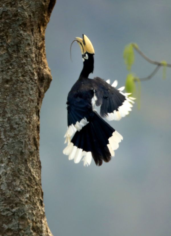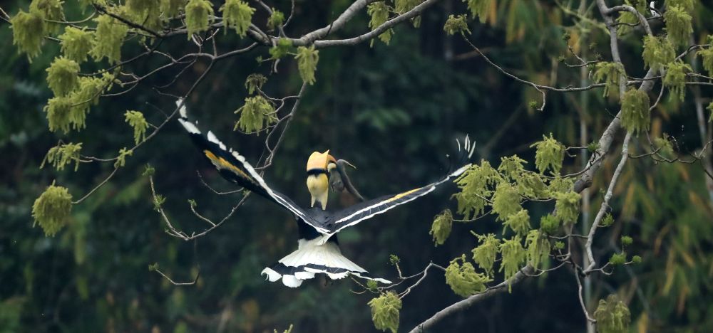 双角犀鸟叼来其他鸟类的幼鸟。朱边勇摄