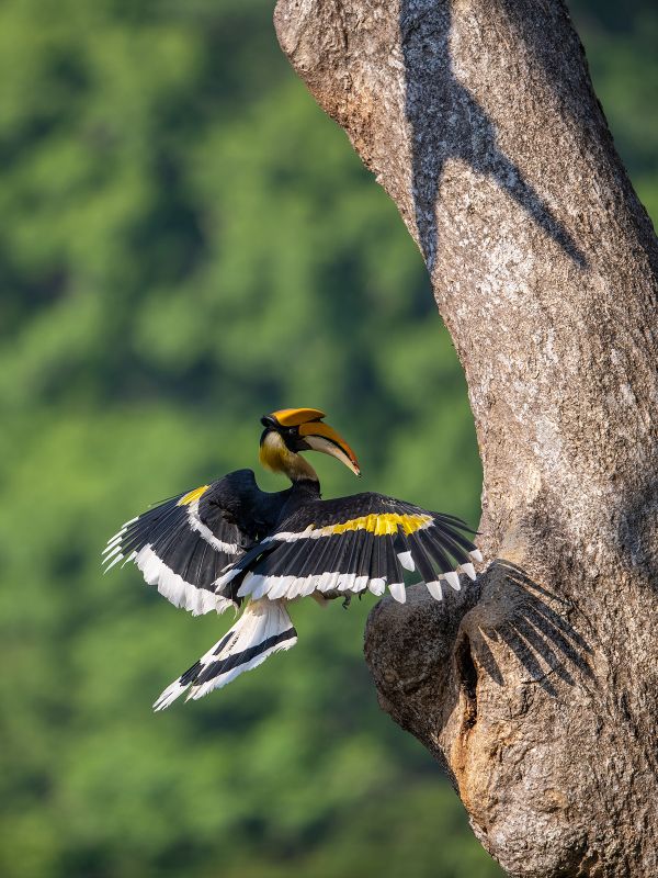 双角犀鸟叼来松鼠喂食幼鸟。孙晓宏摄