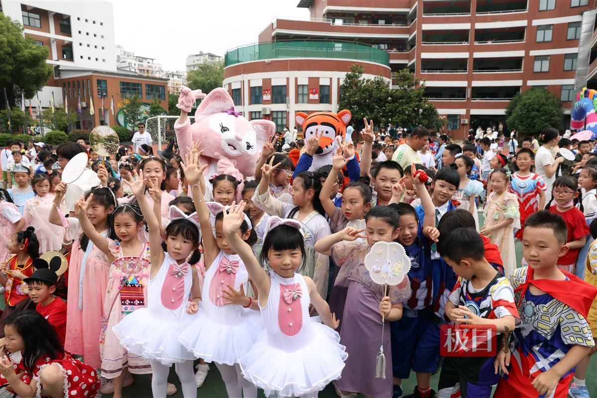 5月31日,在武汉市武昌区未来实验小学美林校区的校园里,1400多名师生打扮成“双胞胎”或“多胞胎”。这些孩子或是朝夕相处的同桌,或是一起成长的好朋友,他们用这样特殊的方式迎接六一儿童节的到来。