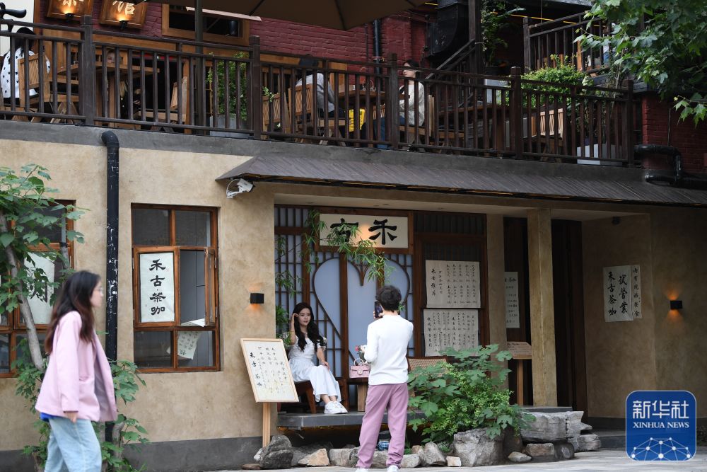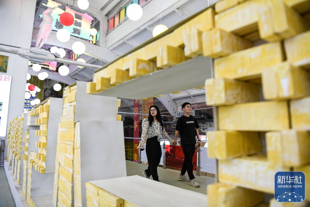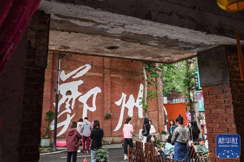 5月28日,游客在郑州记忆·油化厂创意园内参观游玩。新华社记者吴刚摄