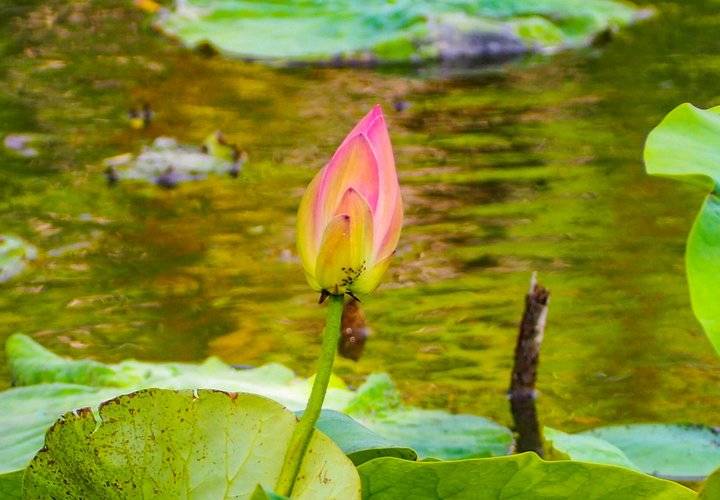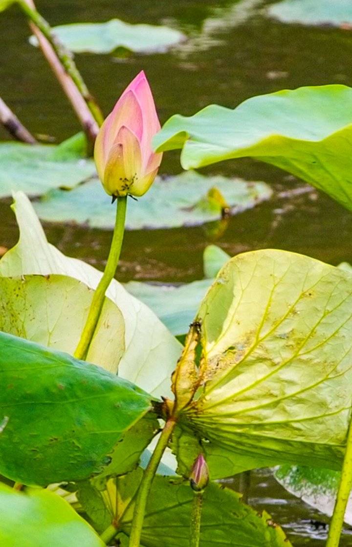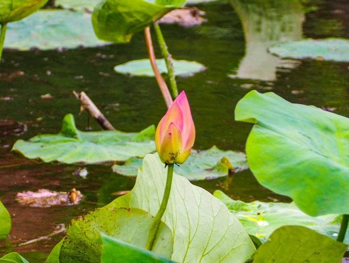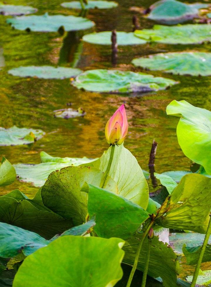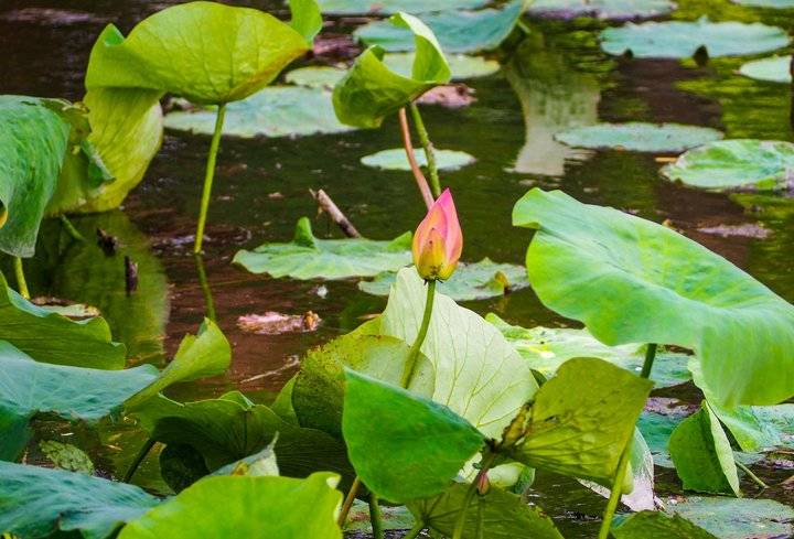 6月5日,济南大明湖畔,今夏第一枝荷花已经含苞待放,下边新的花苞也在萌发。济南大明湖荷花的盛花期一般在7月中旬左右,较早的在六月底开放。这枝荷花这么早就来报告夏天的到来,真是急性子。与此同时,睡莲也开始灿烂怒放,一起装点美丽夏天。