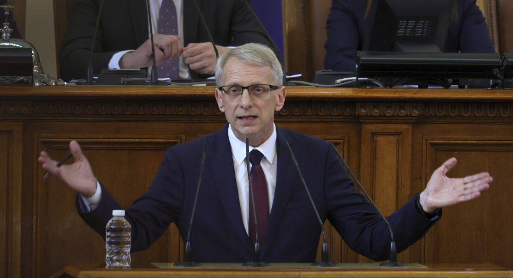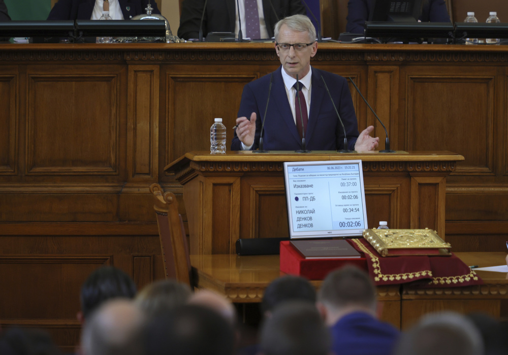 6月6日,在保加利亚索非亚,新任总理尼古拉·登科夫在议会上讲话。新华社/美联