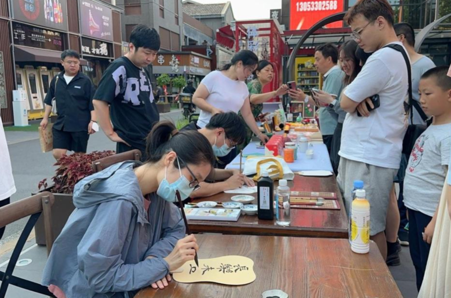 6月10日,由市文化和旅游局指导,市文化馆和齐鲁晚报•齐鲁壹点共同打造的“就在淄博·城市艺术SHOW”再度走向城市中央,来自淄博的20多位书画艺术大师和文化创作者们走出家门,分别在淄博文化集结地之一——开元文化大世界和淄博重要街区——尚美第三城一起完成了带有淄博浓郁文化色彩的“夏日街头艺术”。