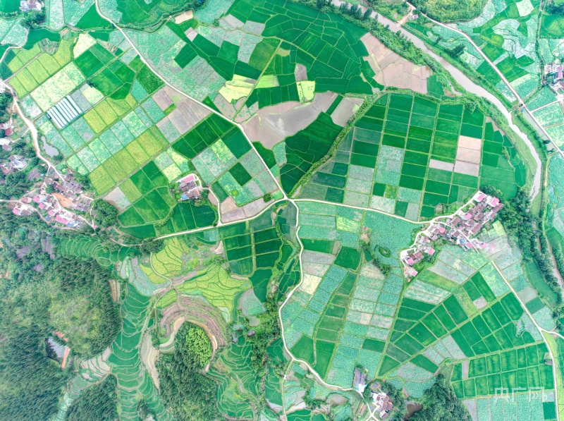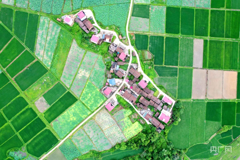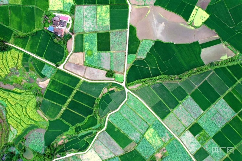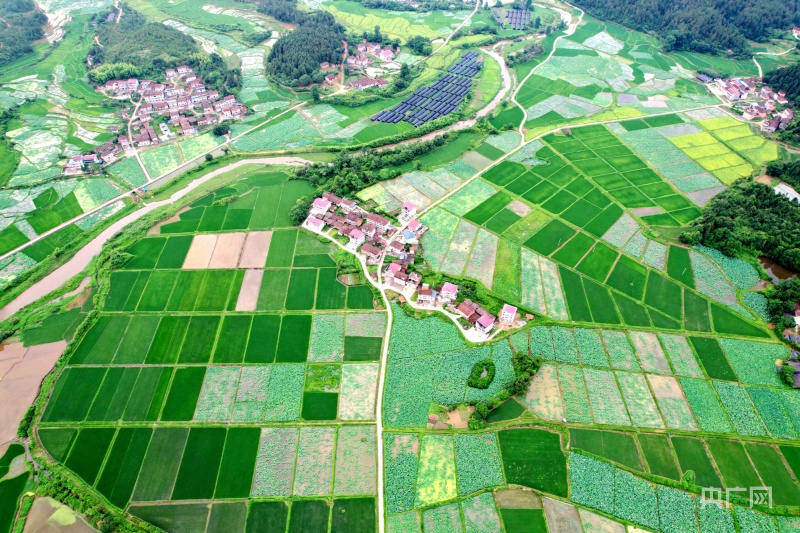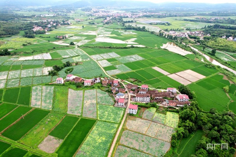 航拍江西广昌龙虎村广袤农田,整齐连片、阡陌纵横(央广网发徐维栋摄)
