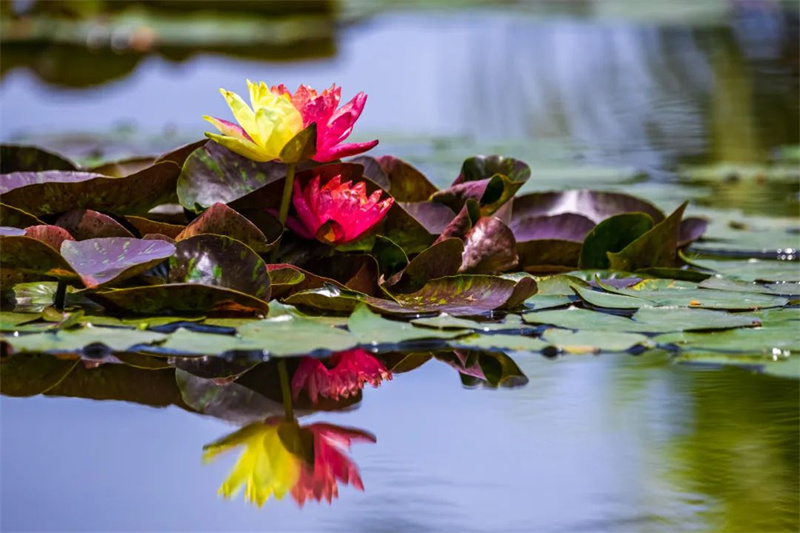 在玄武湖诸多睡莲品种中,除了“万维莎”会呈现出罕见的双色外,还有另一个品种“夹克丰”也是一花双色。“夹克丰”多数是红色花瓣上点状分布白色,玄武湖景区在2021年、2022年连续两年都出现了半白半红、泾渭分明的罕见双色花朵,今年同样值得期待。