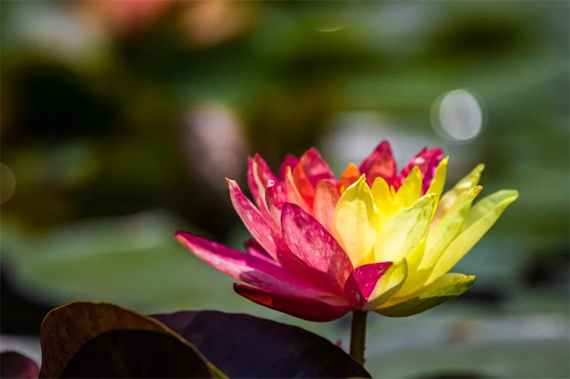 据了解,这朵双色睡莲品种为“万维莎”,有百变女王、世界睡莲冠军之称。一般情况下,红色和黄色会不同比例地出现在每朵花上,而这种半黄半红、泾渭分明的极为罕见。