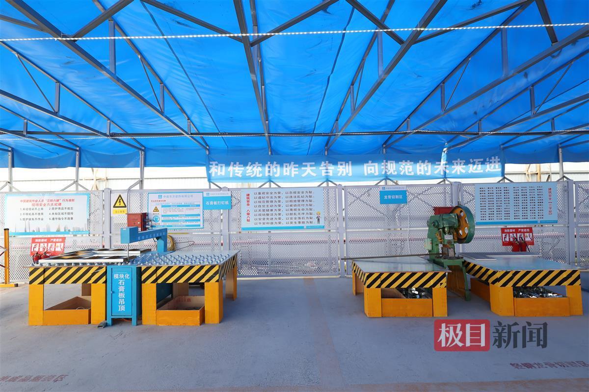 与印象中施工现场尘土飞扬、杂乱无章的景象所不同的是,这里的施工现场干净整洁,加工所产生的粉尘都由机器上安装的灰尘吸附装置吸附进去,真正实现了不见扬尘和加工废料的绿色环保施工。