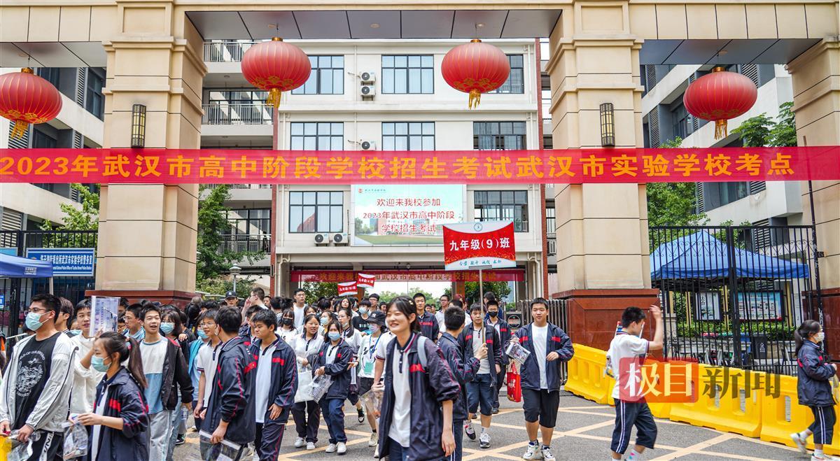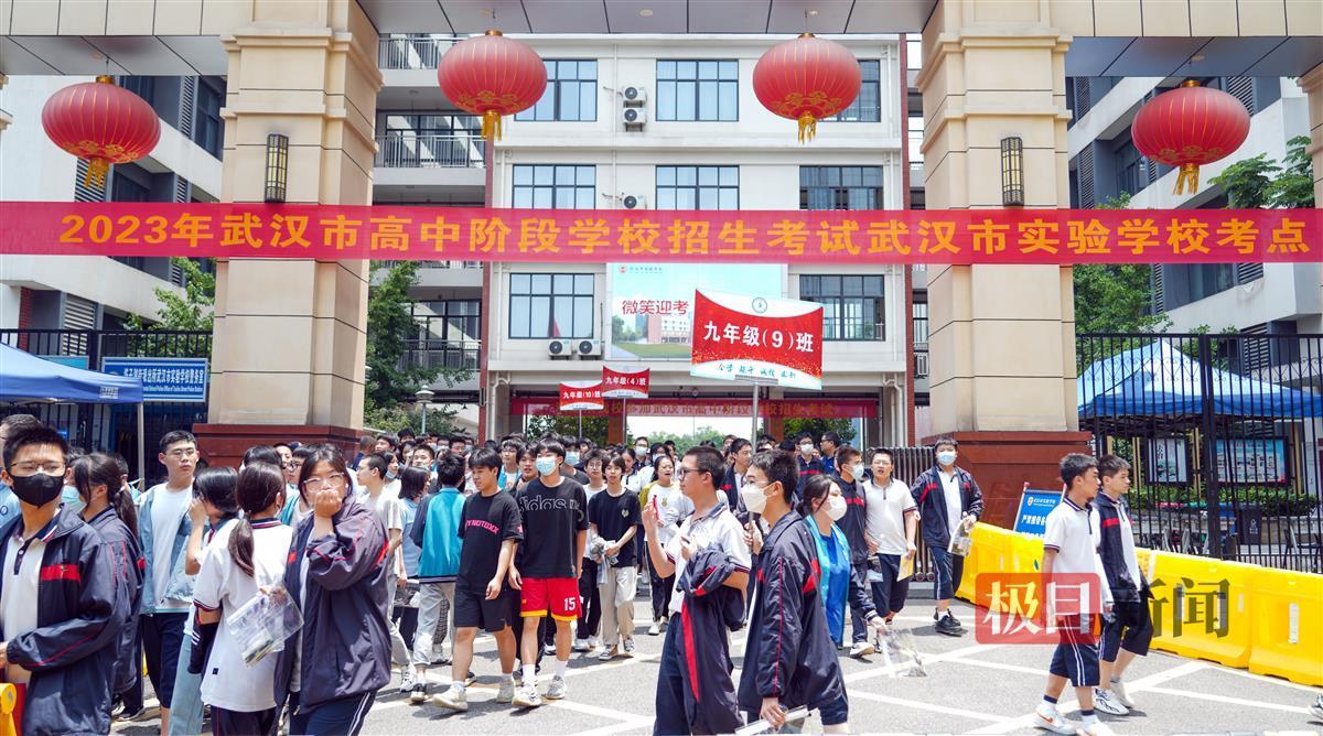 武汉中考首场考试结束后,武汉市实验中学考点考生走出考场
