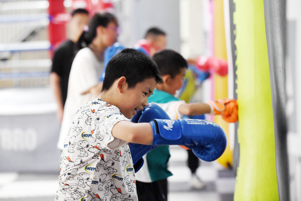 6月23日,小朋友在贵州省仁怀市体育馆进行散打基本功练习。新华社发(陈勇摄)