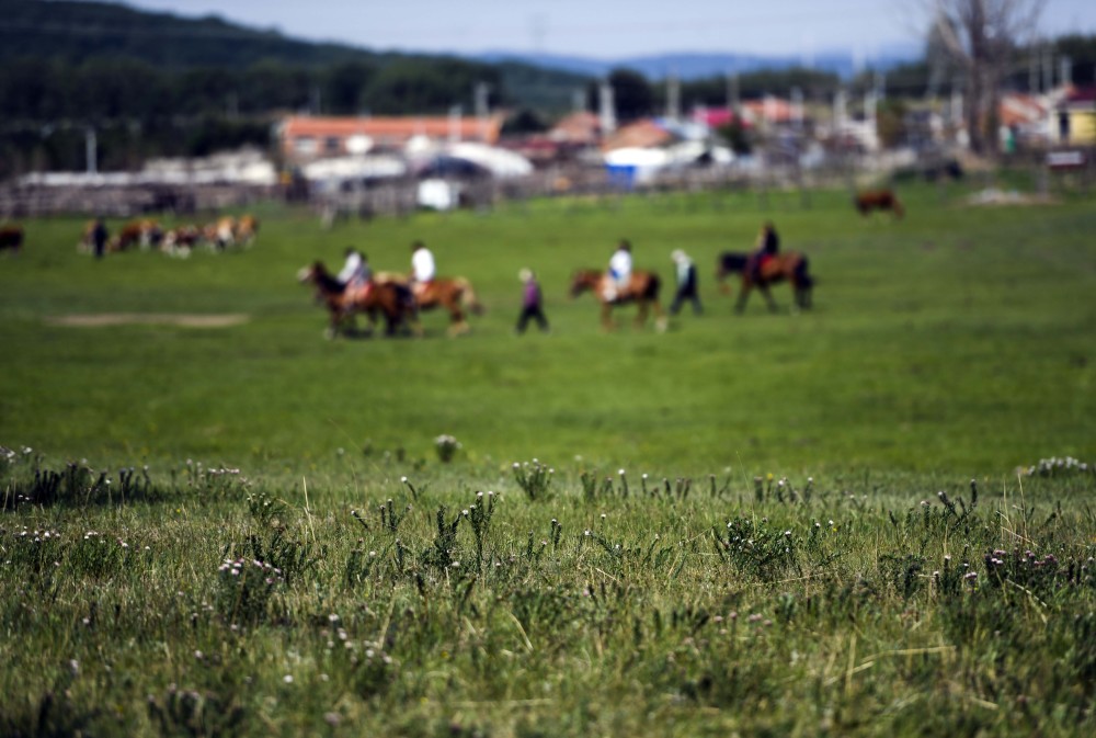 6月23日,游客在河北省承德市御道口草原森林风景区游玩。新华社发(刘满仓摄)