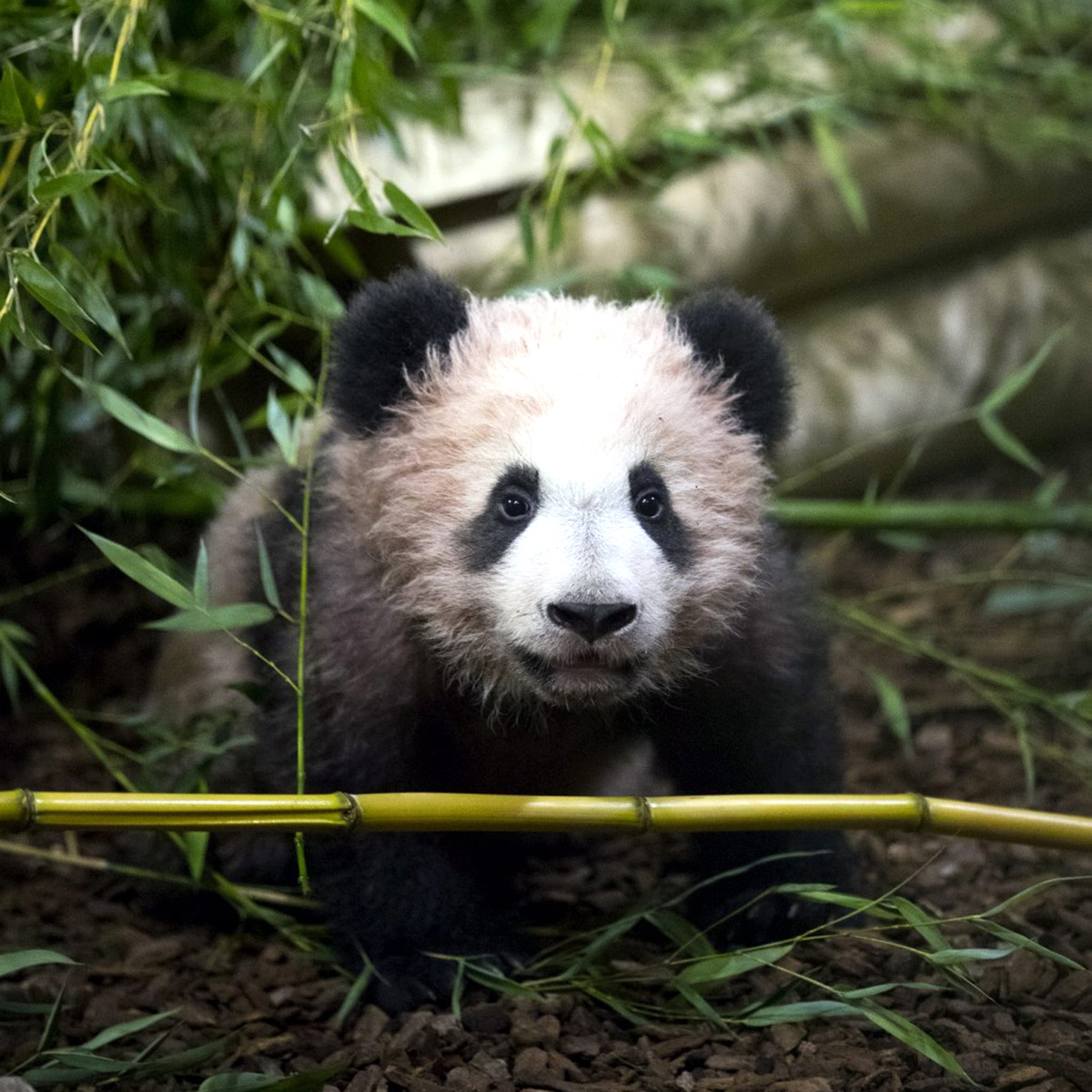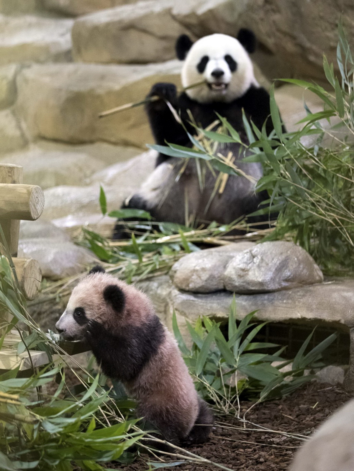 为了给“圆梦”创造一个安全有趣的成长环境,动物园搭建了一个低矮的木爬架,还准备了一些小岩石,供小家伙攀爬练手。“圆梦”日常基本都是腻在妈妈身边,在饲养员的看护下成长,5个月大的它已经开始慢慢啃咬竹子了。2018年1月13日,大熊猫“圆梦”在法国圣艾尼昂市博瓦勒野生动物园,正式与公众见面。