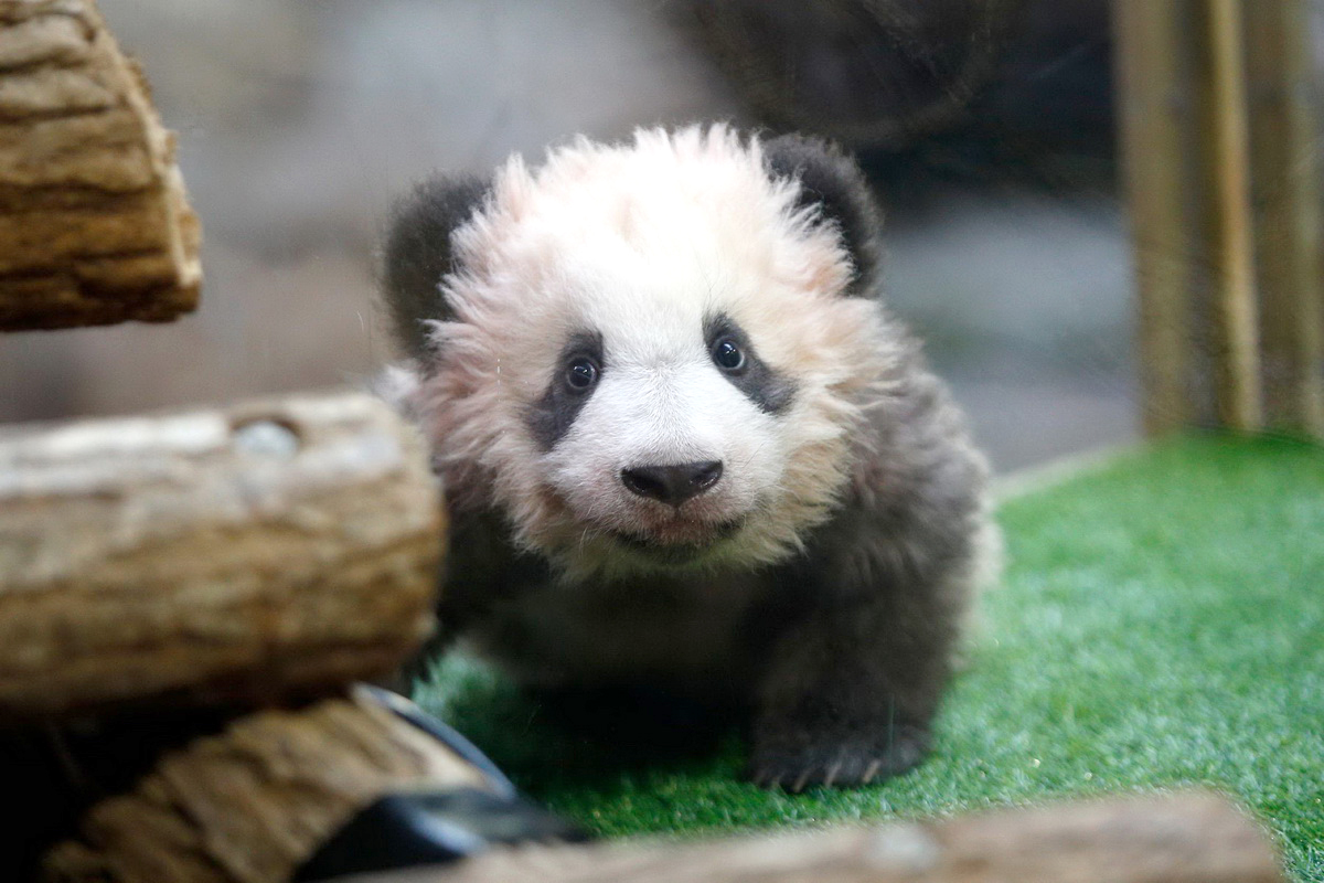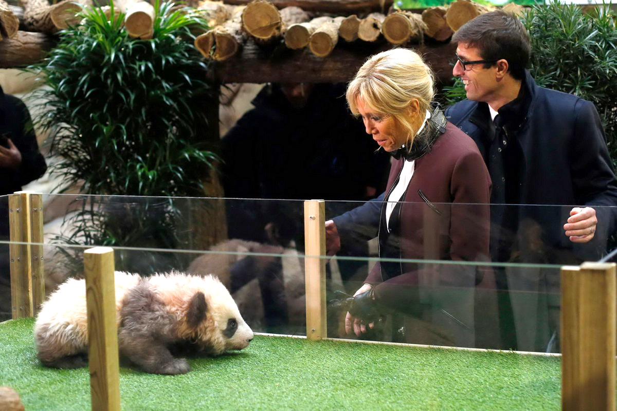2017年12月4日,法国博瓦勒动物园,法国为首只在法国出生的大熊猫举行命名仪式,法国第一夫人布里吉特出席。