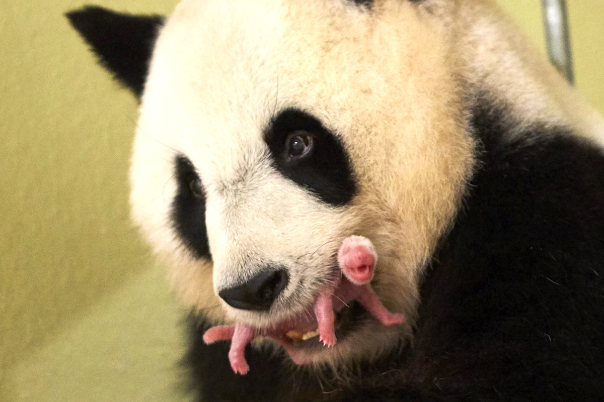 当地时间2022年7月18日,法国博瓦勒,快满一岁的大熊猫双胞胎“欢黎黎”和“圆嘟嘟”迎来一岁生日。它们是“圆梦”的双胞胎妹妹。
