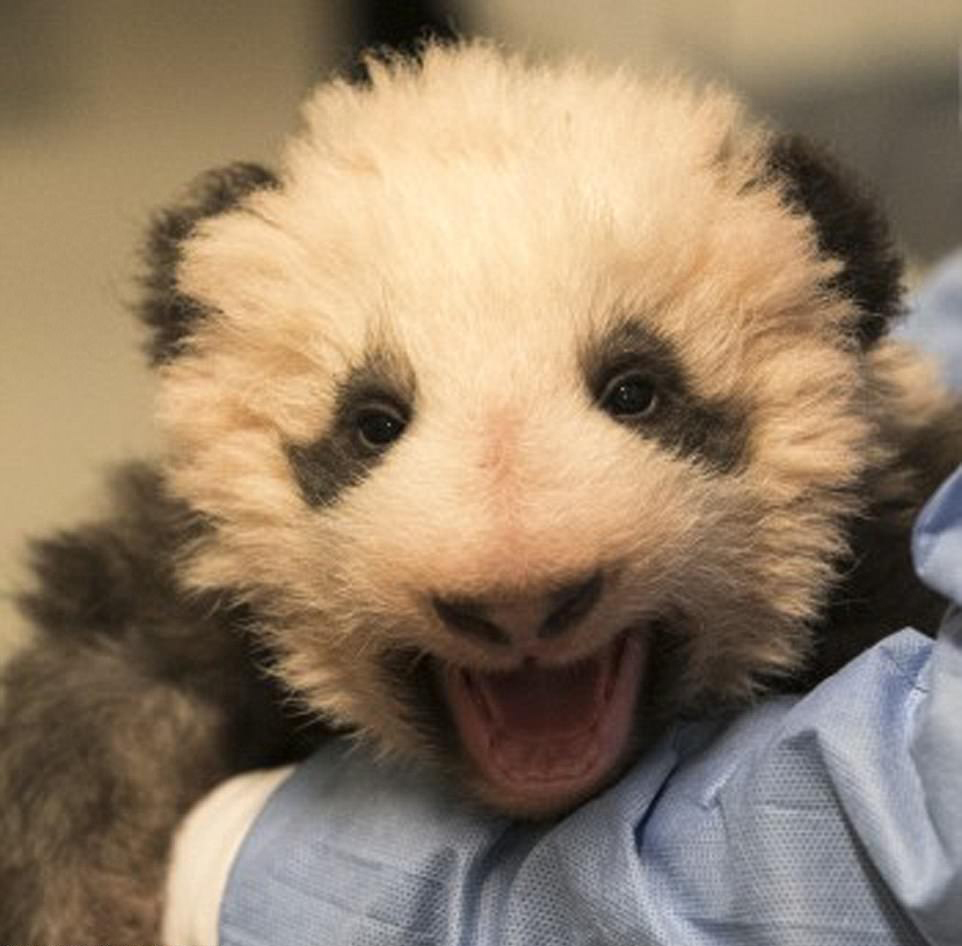 五个月大的“迷你圆仔”在接受兽医专业检查时张大了嘴